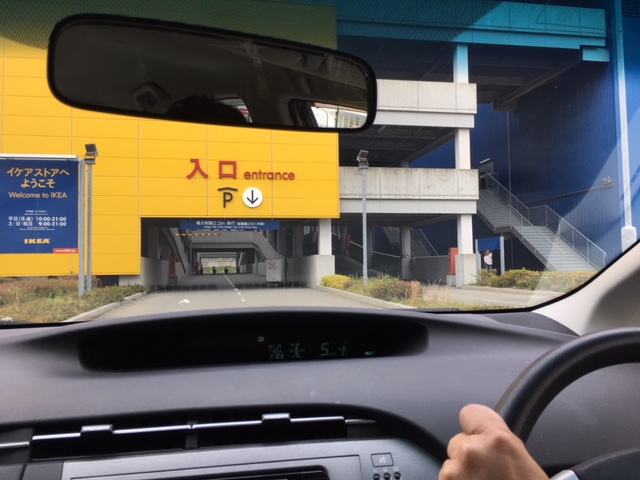 今度はIKEA駐車場に入って車庫入れ練習ですが、何処でも入れれる様にポイントで無く感覚で入れる練習し小休憩