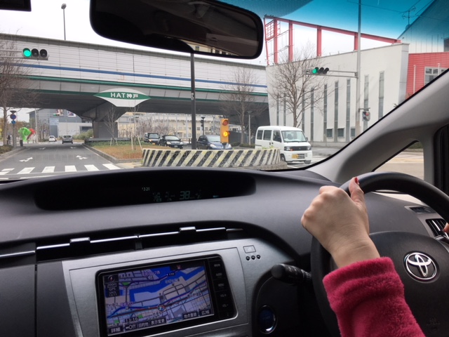 次はHAT神戸から港島トンネルを走って行くコースで、曲がる交差点と走る車線を覚えてもらいながら、ワールド記念ホールの駐車場に到着して車庫入れ練習