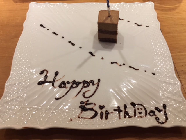 サプライズでローソクを立てた小さなケーキが(ToT)/~~~感激です