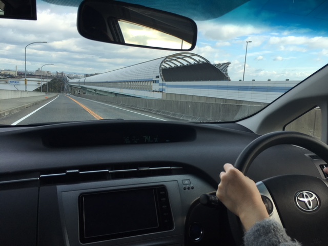 今度は芦屋浜まで最初は上げれなかった速度を上げてもらい、速度に慣れてもらってから2号線で自家用車駐車場まで戻り、今度は自家用車の駐車場出の簡単な車庫入れ方法をお教えして何度か練習して