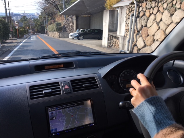 私が以前勤めていた須磨浦自動車学院あとの、北須磨自動車学院の卒業生さんで、免許取得してから運転経験は全く無く、昨年東灘区の鴨子ヶ原に引っ越しされて御子様が誕生され、ココでは車の運転が絶対に必要なので、奥様専用のコンパクトカーを買ってもらったのですが、甲南病院から阪急御影の急坂道が初心者には大きな壁で、ココはプロにお願いしようと申込み頂きました
