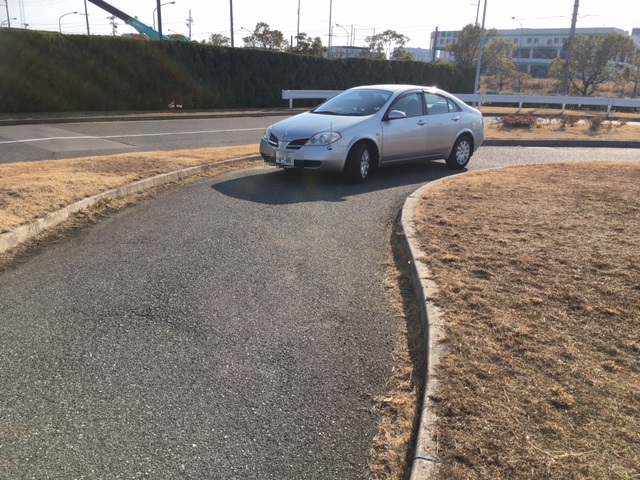今日は試験車と同じプリメーラをレンタカーで借りて、ポートアイランドの練習場に移動して、ハンドル切れ角が無くホイールベースが長くて運転しずらいプリメーラで、右左折方法や進路変更の場内課題項目を何度も練習してから、方向変換と縦列駐車とS字クランクコースの課題を教習