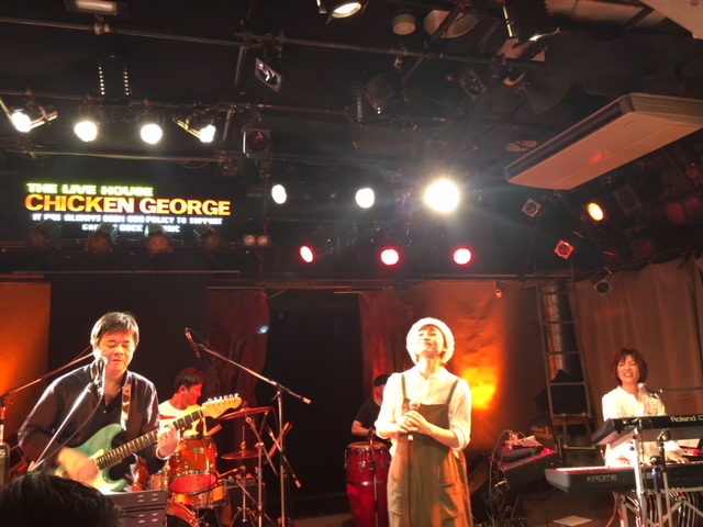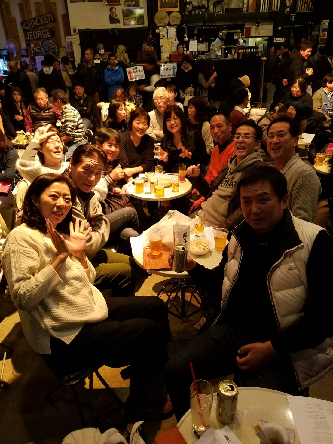 昨年から月に一度会ってる中学時代の友達の中の1人で、女友達のカッちゃん(普段は看護師さん)が昨年末会った時に、「ライブするから来て~」と言う事で友達10人と三宮チキンジョージへ