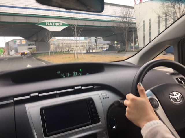 神戸大橋渡って三宮フラワーロードを走り、車線変更の練習しながら右左折練習もして