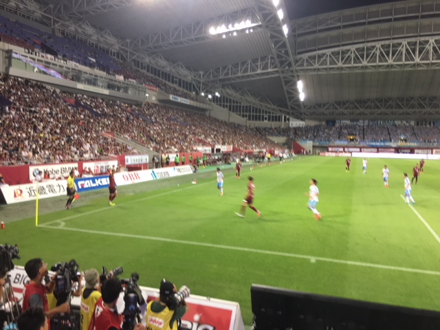 今夜の試合はスペイン代表32億のイニエスタ選手と、ドイツ代表6億のポドルスキ選手が揃っての初試合で、対戦相手はジュビロ磐田