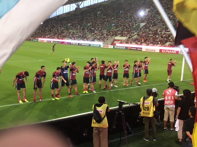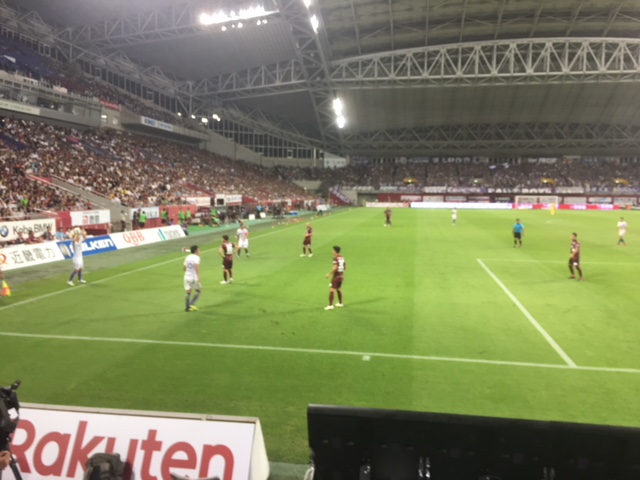 対戦相手は現在首位のサンフレッチェ広島で、前半いきなり失点して意気消沈でしたが、スグにイニエスタ選手のゴールで同点にして