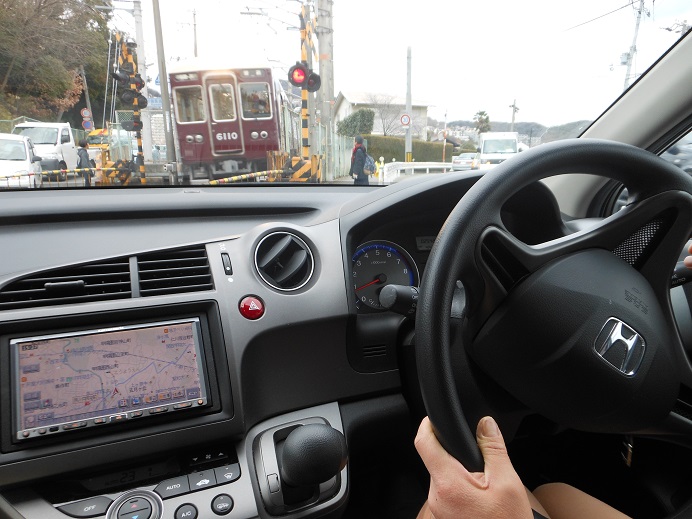 一時停止交差点の通過と大社中学校前にある踏切通過